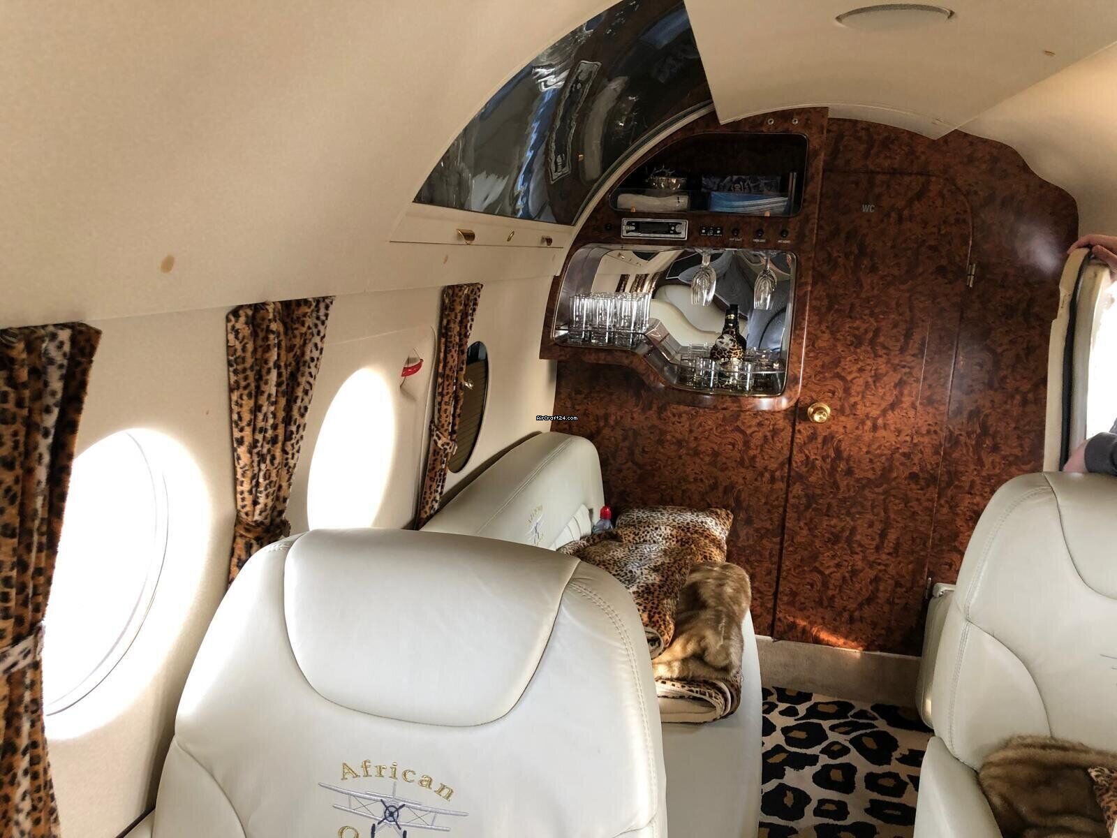| интерьер | | Luxury VIP leather cabin with adjustable-backrest armchairs & two tables, Savannah-style fit-out, Panoramic bubble window. |