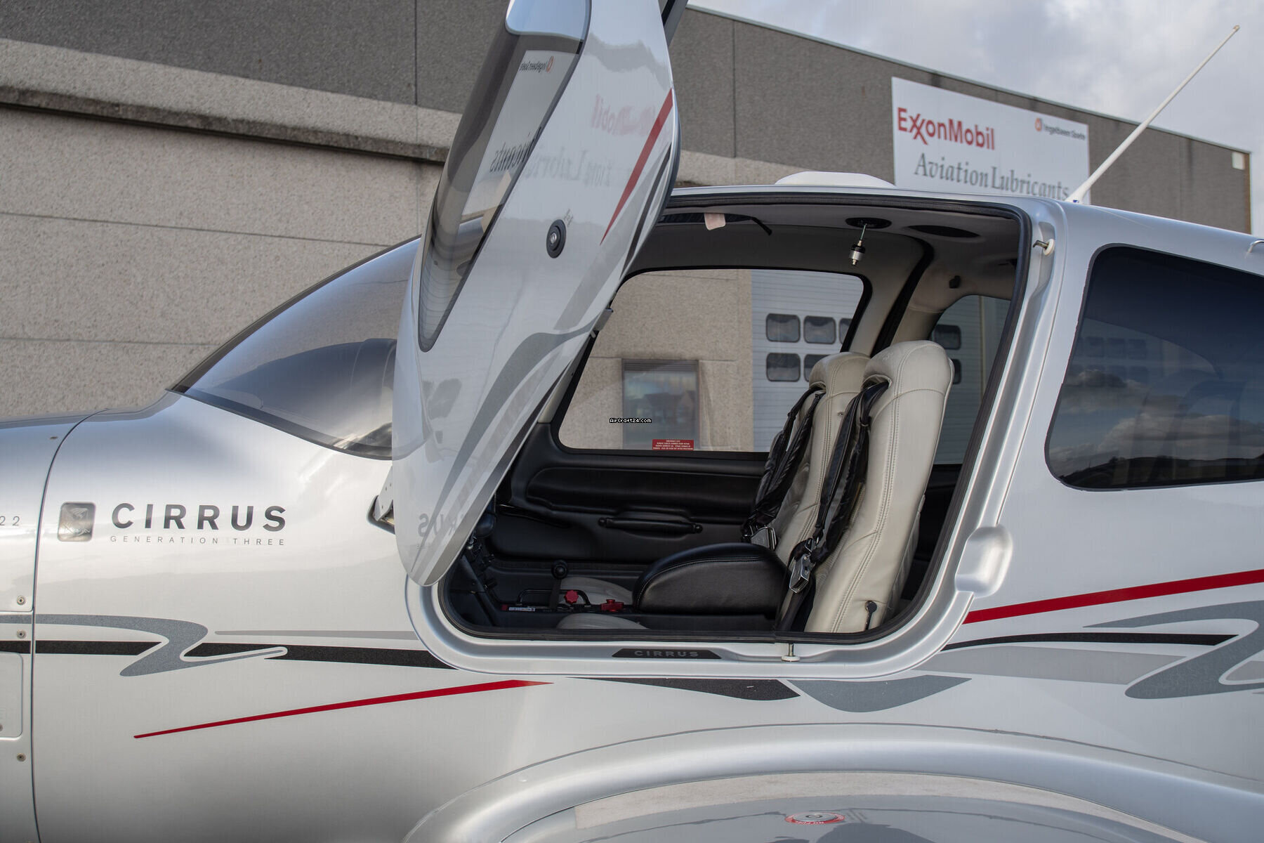 | внешний вид | | The exterior of this Cirrus SR22G3 Turbo Normalized remains as striking as the day it left the factory, featuring the timeless Sterling silver base design. The sleek fuselage is accented by a dynamic multi-tone stripe package in Grey, Black, Red, and Blue, creating a ramp presence that perfectly complements its highperformance capabilities. |